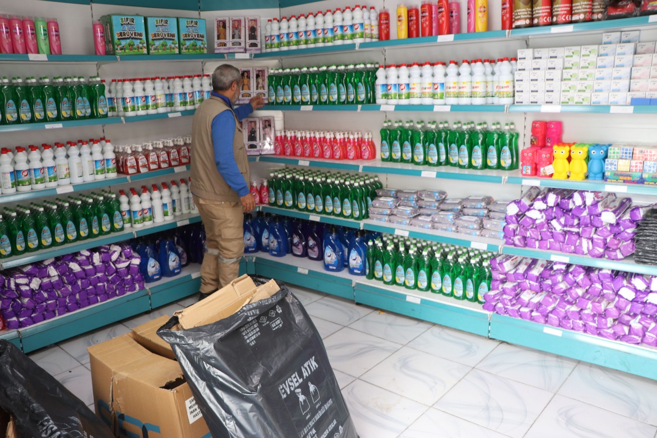 Periyodik olarak çalışmaların devam ettiği Sıfır Atık Marketlerde temiz bir çevre için çalışmalar hummalı bir şekilde sürüyor.