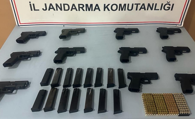 otomobilde yapılan aramada; 11 ruhsatsız tabanca, 15 tabancalara ait şarjör ve