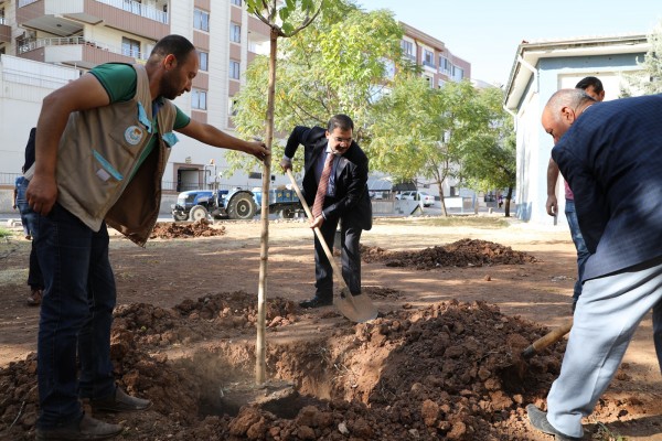Beraberinde Başkan Yardımcısı Mehmet Erol, birim müdürleri ve teknik ekibi ile birlikte bu kez Veysel Karani Mahallesinde yürütülen çalışmaları yerinde inceleyen Canpolat’ı mahallede bulunan parklara sonbahar aylarında gerçekleştirilen ağaç dikimi döneminin startını verdi.