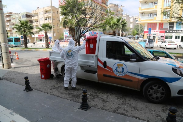 Ekipler, vatandaşların salgın nedeniyle kullandıkları eldiven, maske ve benzeri tıbbi atıkların kullanılmasının ardından çevreye gelişigüzel şekilde atılmasının önüne geçilmesi adına ilçe geneline tıbbi atık kutularının dağıtımını sürdürüyor.