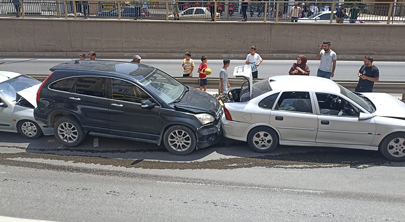 Seyir halinde ilerleyen 3 araç, sürücülerinin kontrolü sağlayamaması üzerine zincirleme bir şekilde çarpışarak kaza geçirdi.