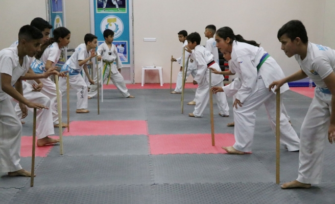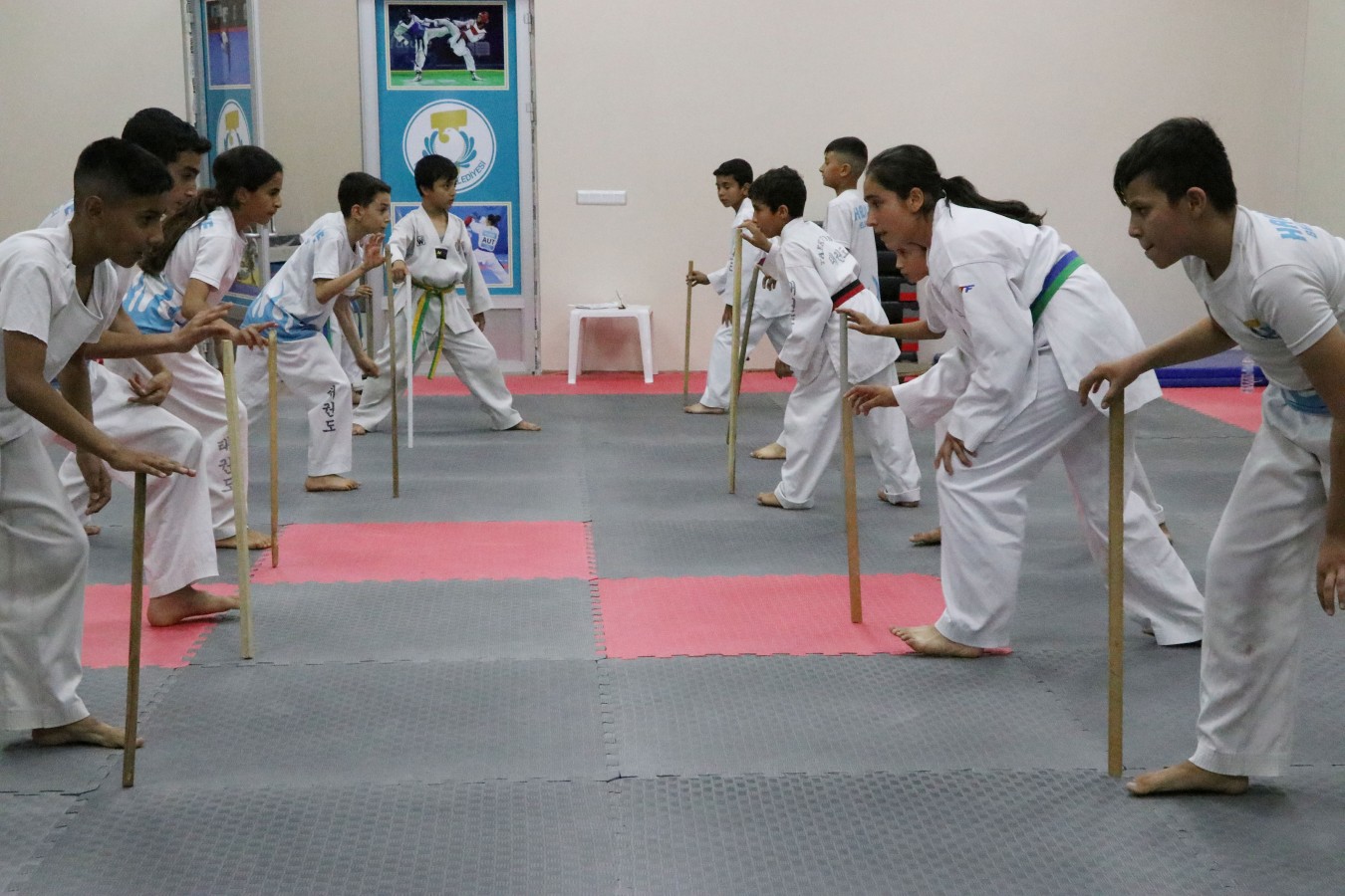 tekvando kursunda şampiyon sporcular yetiştiriliyor.