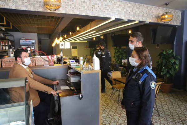 Zabıta Müdürlüğü, Cumhurbaşkanı Recep Tayyip Erdoğan’ın açıklaması sonrası müşteri kabulüne başlayan iş yerlerine yönelik denetimler yaptı. Bugün itibariyle saat 07:00- 19:00 saatleri arasında müşteri kabulüne başlayan lokanta, kafeterya, restoran ve kıraathanelere giden zabıta ekipleri, maske, mesafe ve hijyen kurallarına uymaları konusunda işletme sahiplerine uyarılarda bulundu. Yeni normalleşmeyle birlikte yüzde 50 kapasiteyle müşteri kabul edilmesi yönünde hatırlatmalarda bulunan zabıta ekipleri, Kovid-19 salgınıyla mücadelede belirlenen kurallara uyulması gerektiğini de ifade etti.