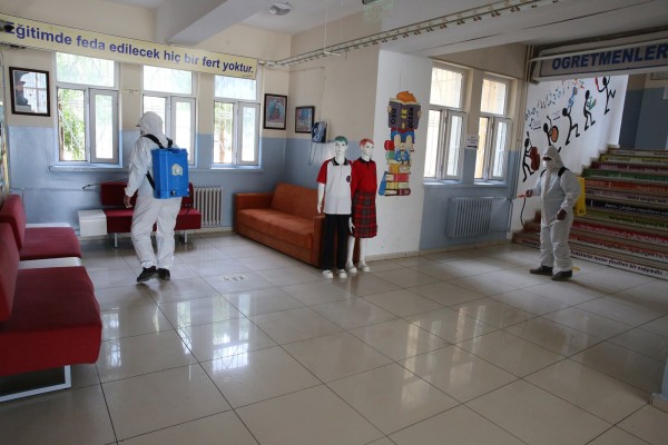 Öte yandan Temizlik İşleri Müdürlüğüne bağlı dezenfektasyon ekipleri ise yıkama işlemlerinin tamamlanması ile birlikte okulların içerisine girerek sınıfları, öğretmen odalarını ve lavaboları dezenfekte ederek hijyenik bir ortam sağlıyor.