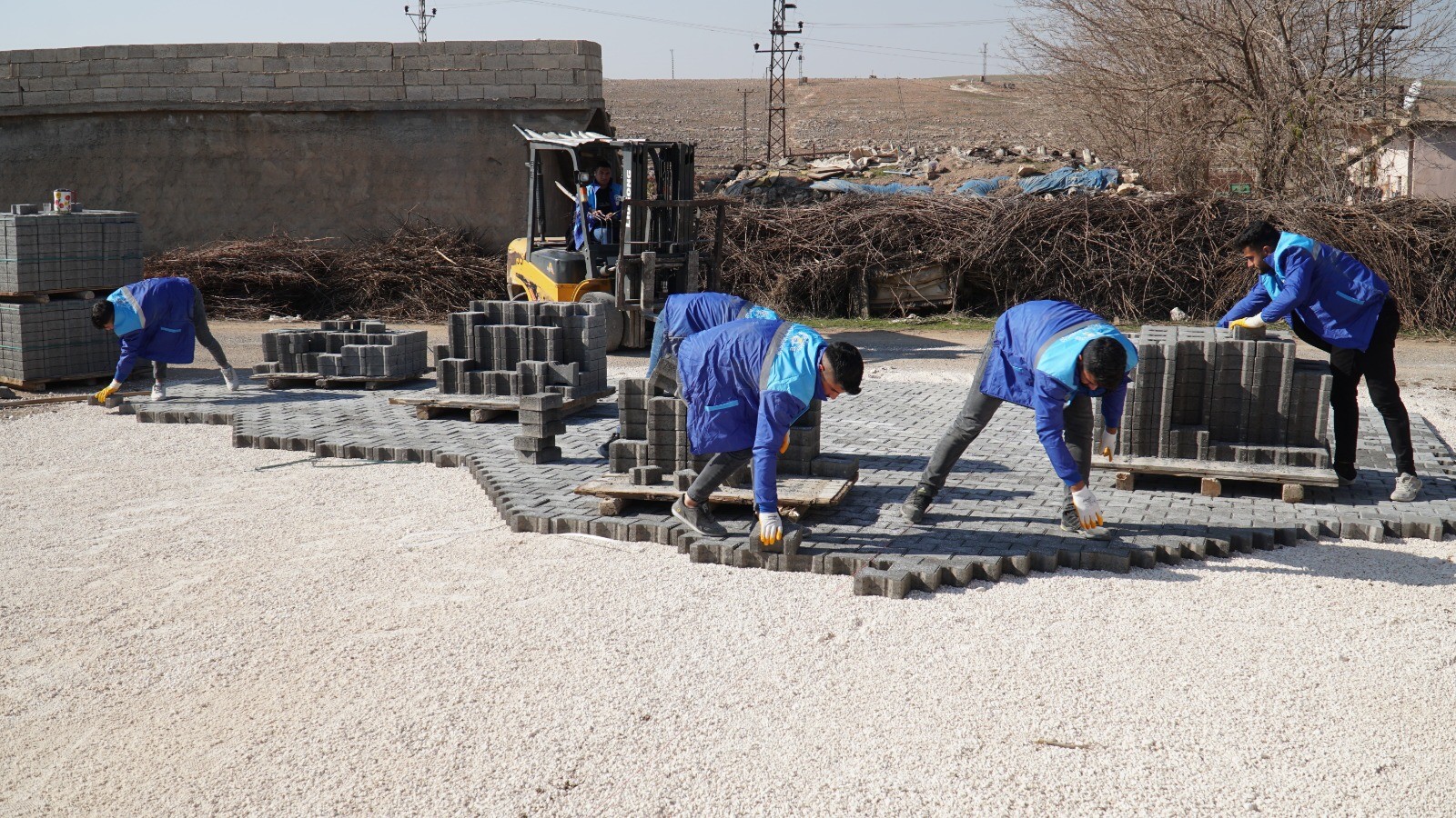 Haliliye Belediyesi Fen İşleri Müdürlüğü tarafından merkez ve kırsal mahallelerde devam eden yol çalışması, kilitli beton parke döşemesiyle devam ediyor.