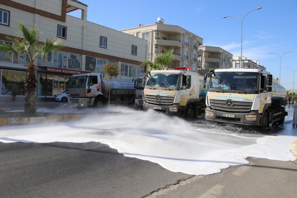 Bu kapsamda Belediye Başkanı Mehmet Canpolat’ın talimatları doğrultusunda Temizlik İşleri Müdürlüğü ekipleri son olarak, Ertuğrul Gazi ve İmam Bakır mahallerinde bulunan cadde ve sokakları köpüklü su ile yıkayarak, dezenfekte etti.