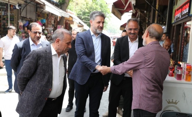 Şanlıurfa AK Parti Milletvekili Abdulkadir Emin Önen, Eyyübiye Belediye Başkanı Mehmet Kuş ile beraberindeki heyet, tarihi çarşılar bölgesinde esnaf ve vatandaşlarla bir araya gelerek, destek talep etti.
