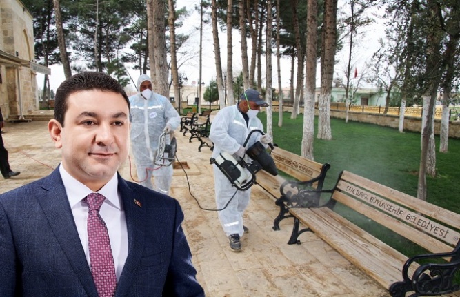 Harran Belediye Başkanı Mahmut Özyavuz, “Harran Belediyesi olarak korona virüsüne karşı tüm ekiplerimizle gerekli tedbirleri ivedilikle aldık. Hazırlanan dezenfeksiyon solüsyonu ile 4 kişilik bir ekip belirlenen bina ve kurumları ilaçlama çalışmalarını gerçekleştiriyor. Bugün başlattığımız ilaçlama ve dezenfeksiyon çalışmalarımız belli aralıklarla devem edecek’’ dedi.