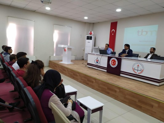 Panelistler TBM (Türkiye Bağımlılıkla Mücadele Eğitim Programı) İl Koordinatörü Reşat Gülşen Bağımlılık uzmanı Bişar Görür ve Yeşilay Şanlıurfa Şube Başkanı Muharrem Çelik. Reşat Gülşen bağımlılık döngüsü birlikte başarma, önleme çalışmalarına değinirken, Bişar Görür motivasyon çalışmalarından bahsetti.