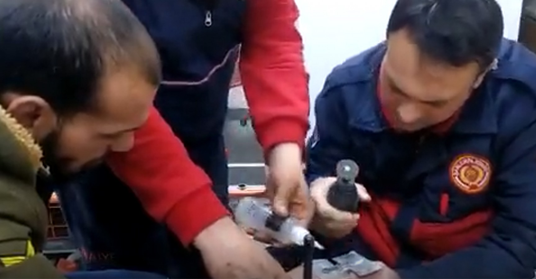 Burada sağlık çalışanlarının müdahalesi sonuçsuz kalınca itfaiye ekiplerine bilgi verildi. Hastaneye giden itfaiye birimi, vatandaşın parmağındaki yüzüğü spiral ile kesip çıkardı.