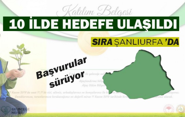 Şanlıurfa’da ise başvurular hala sürüyor. Kentte kampanyaya katılım durumunun %73 olduğu öğrenildi. Kent için hedeflenen fidan sayısı 200 bin olarak açıklanırken şuana kadar 145 bin 791 fidan sahiplenildi.