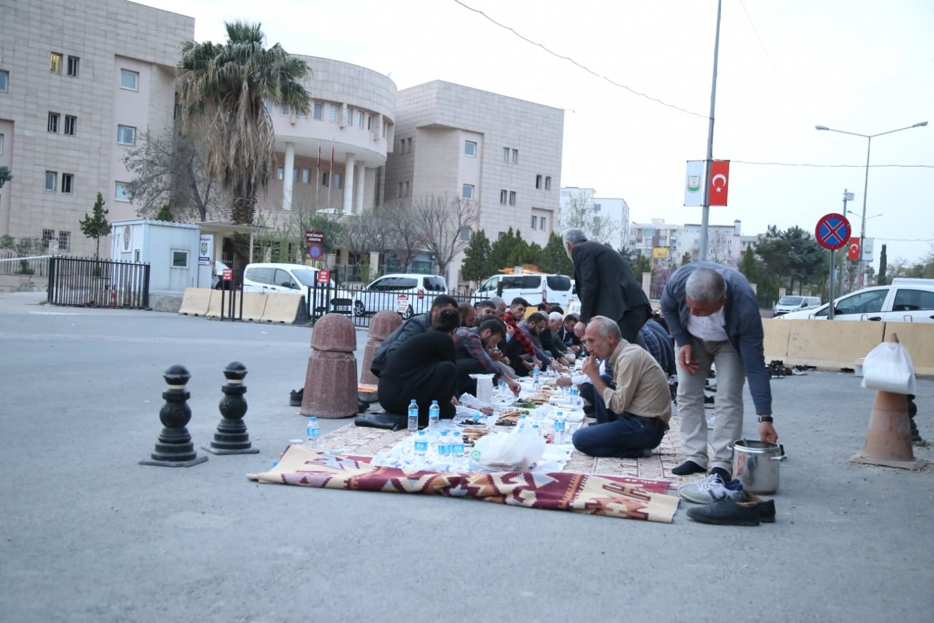 Sabah erken saatlerde Suruç ilçesinde bulunan evlerinden, adliye önüne gelen anne ve oğlu, oruçlarını nöbet tuttukları alanda açtı. Ailenin “Adalet sofrası”na Halkların Demokratik Partisi (HDP) Urfa Milletvekilleri Ayşe Sürücü, Ömer Öcalan, HDP Urfa İl Örgütü temsilcileri ile çok sayıda partili misafir oldu.