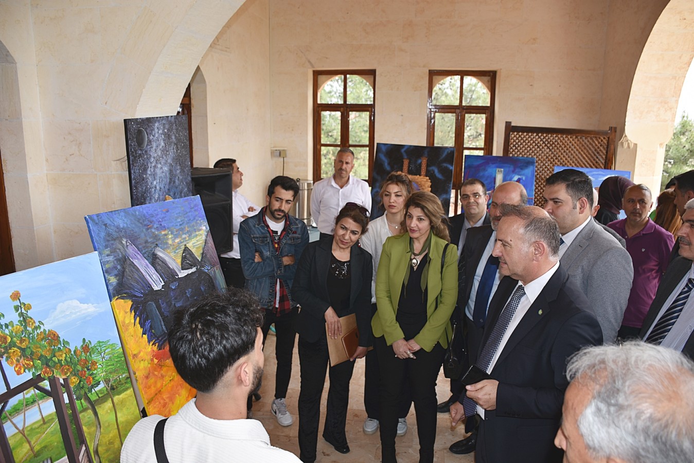 Resim Çalıştayı ve Sergisi’nde protokol üyeleri ve sanatseverler, birbirinden