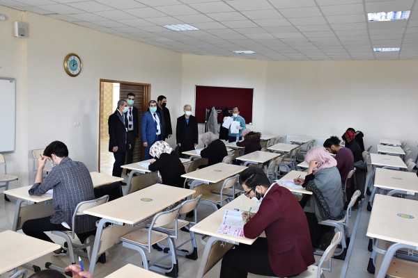 Sınav binalarını ve salonları gezerek Uluslararası Öğrenci Koordinatörlüğü yetkililerinden bilgiler alan Harran Üniversitesi Rektörü Prof. Dr. Mehmet Sabri Çelik öğrencilerle ilgilenerek sınavda başarılar diledi.