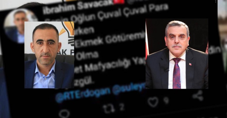 Geçtiğimiz günlerde Twitter hesabından Şanlıurfa Büyükşehir Belediye Başkanı Zeynel Abidin Beyazgül’e yönelik olarak yapmış olduğu paylaşımda “Oğlun çuval çuval para götürüyor. Esnaf ekmek götüremiyor. Zalim olma. Beni korkutmaya emek harcama korkutamazsın. Politika mafyacılığı yapma Zeynel Abidin Beyazgül” diyen AK Parti Şanlıurfa İl Başkanlığı İl Yönetim Kurulu Üyesi İbrahim Savacak'tan yeni bir paylaşım geldi.