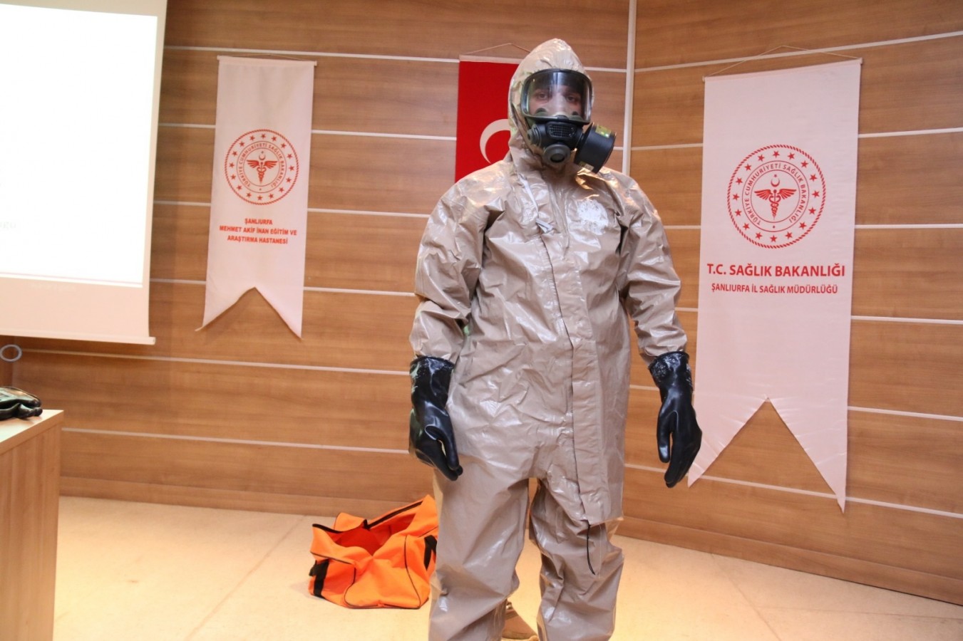 ŞANLIURFA- Şanlıurfa İl Sağlık Müdürlüğü Acil Sağlık Hizmetleri Başkanlığına bağlı Ulusal Medikal Kurtarma Ekibi (UMKE) afet birimi tarafından 5 grup halinde tıbbi KBRN farkındalık eğitimi verildi.