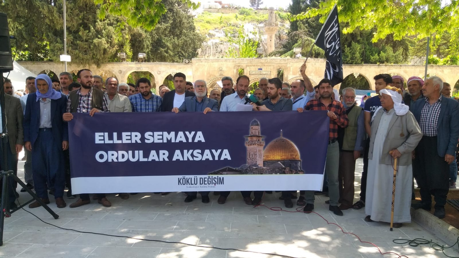 Şanlıurfa’da, İsrail’in, Mescid-i Aksa ve Kudüs'e yönelik yaptığı saldırılar lanetlendi.