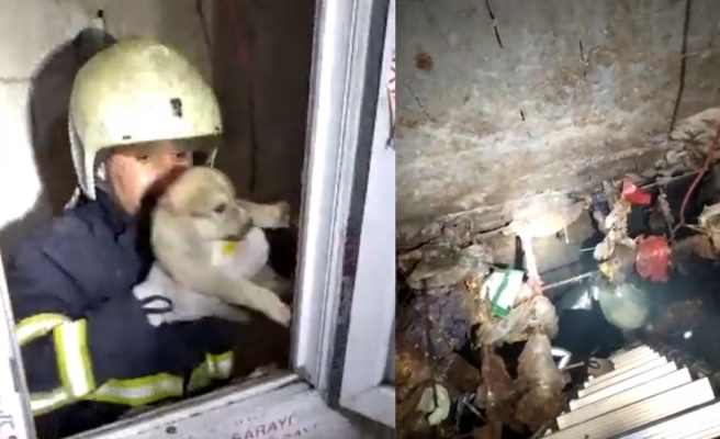 İhbar üzerine olay yerine giden ekipler köpeğin apartman boşluğuna düştüğünü tespit etti. Ekipler tarafından yapılan incelemelerin ardından bir itfaiye eri merdivenle köpeğin düştüğü boşluğa indi.