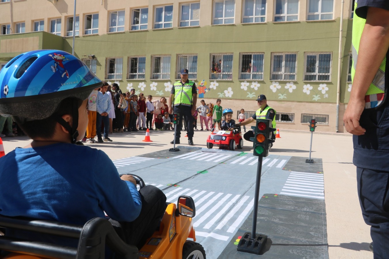 Şanlıurfa İl Jandarma Komutanlığı personelleri tarafından, Eyyübiye’de yer alan Yardımcı İlköğretim Okulunda öğrenim gören öğrencilere, uygulamalı trafik eğitimi verdi.