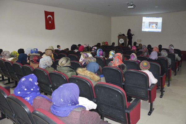 Toplum sağlığı merkezinde görevli Fatime Alialtınoğlu tarafından slayt sunumu eşliğinde hastalık hakkında bilgilendirmeler yapılarak kanserin tanımı, erken teşhis, muayene ve hastalık hakkında çeşitli bilgiler verildi.