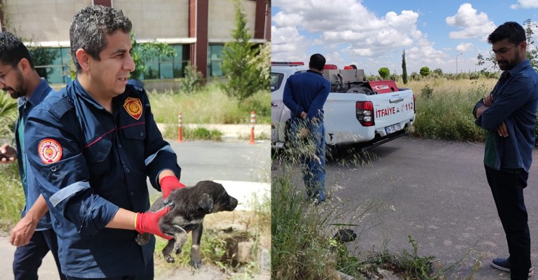 Akçakale ilçesinde kanalizasyona düşen köpek yavrusunun imdadına itfaiye ekipleri yetişti ve hayvanı kurtardı.