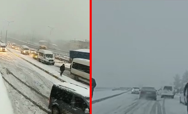 Akabe yokuşu ve Güneybatı Çevre Yolunda mahsur kaldı. Uzun süre yolda kalan sürücüler