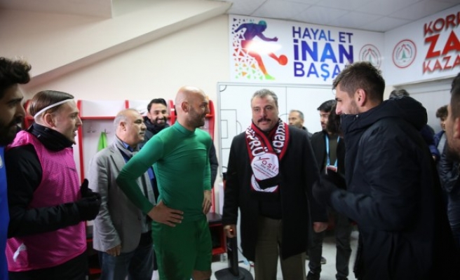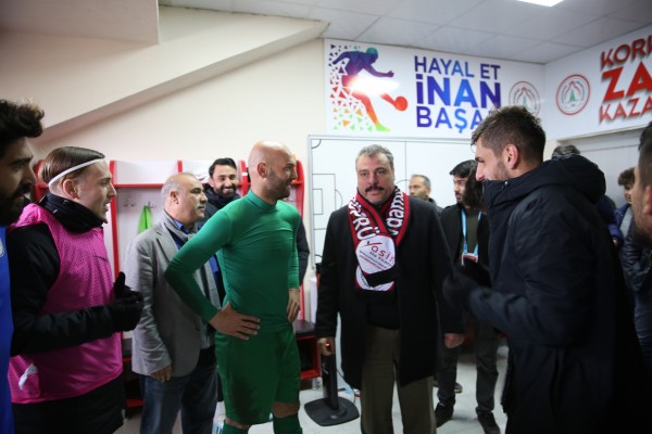 Maç sonunda futbolcular galibiyeti taraftarla kutlarken, soyunma odasında da büyük sevinç yaşandı. Maç sonu soyunma odasına giren Kulüp Başkanı Ahmet Kenan Kayral ve Asbaşkan Halef Tokmakçı aldıkları galibiyet için futbolcuları ve teknik ekibi kutladı.