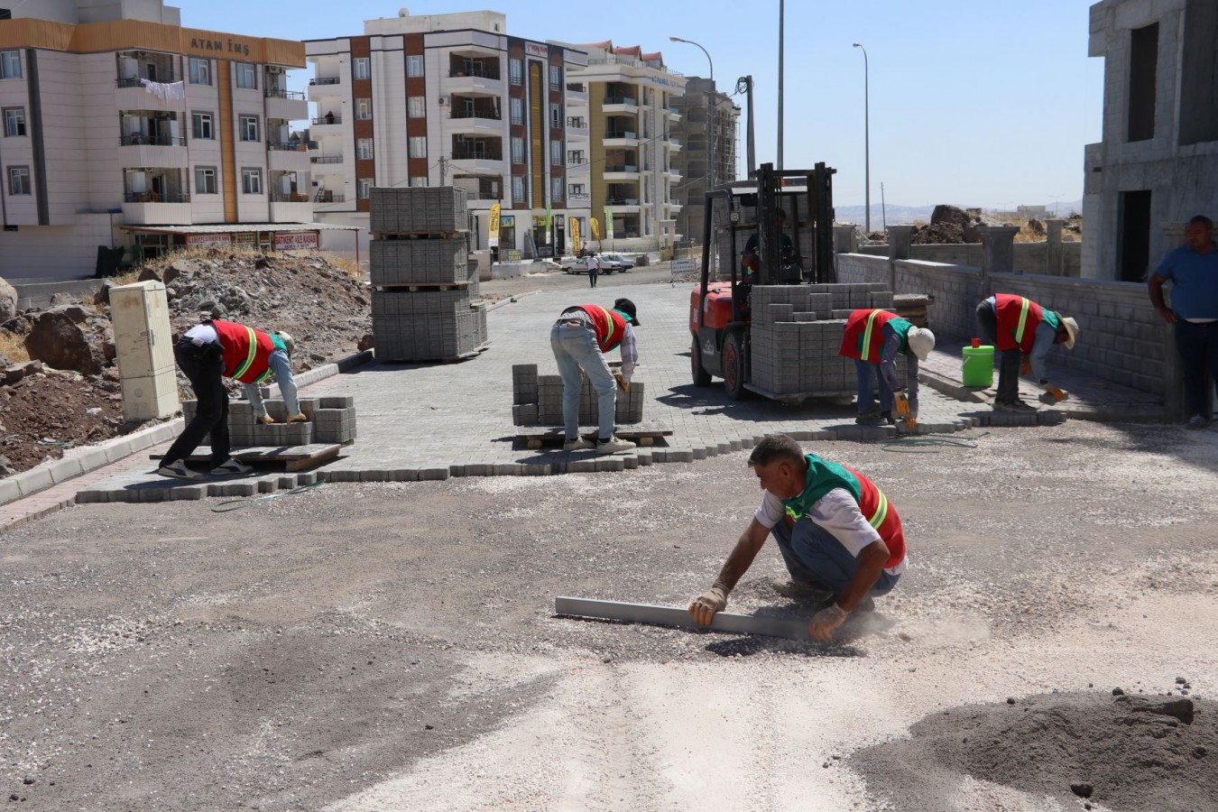 açılan yolları kilitli parkeyle döşerken, yayalar için de kaldırım yaparak