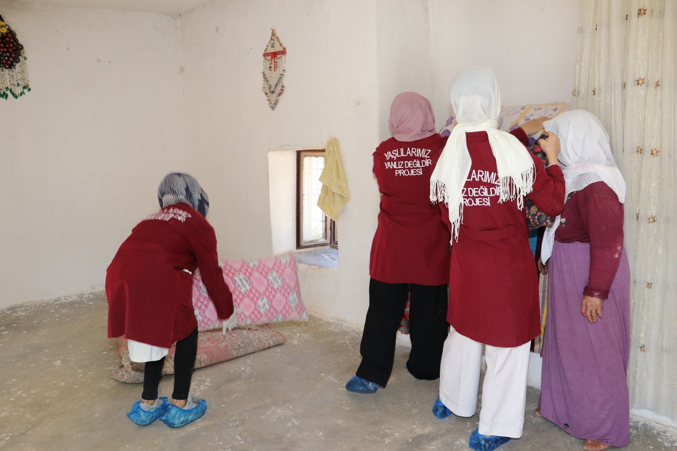 Evde bakım hizmeti için oluşturulan ekip, tespit edilen yaşlı veya engelli vatandaşların evlerine giderek kişisel bakım, temizlik ve ev temizliği işlerini yapıyor.