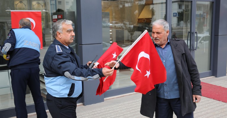 Suriye’nin İdlib kentinde rejim güçlerinin düzenlediği hava saldırısı sonucu 33 Mehmetçik şehit oldu. Şanlıurfa’nın Karaköprü Belediyesi, şehitler ve askerlere destek için Türk bayrağı dağıttı. Karaköprü Belediyesine bağlı Zabıta ekipleri tarafından ev ve işyerlerine asılmak üzere bin adet Türk bayrağı dağıtılırken vatandaşlar ve esnaflar aldıkları Türk bayraklarını ev ve işyerlerine astı.