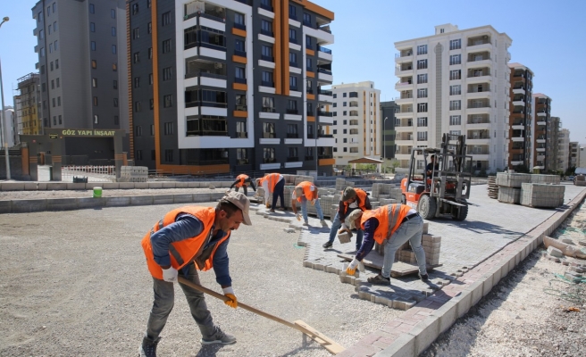 yeni yolları altyapı çalışmaları tamamlandıktan sonra kilitli parke döşeyerek