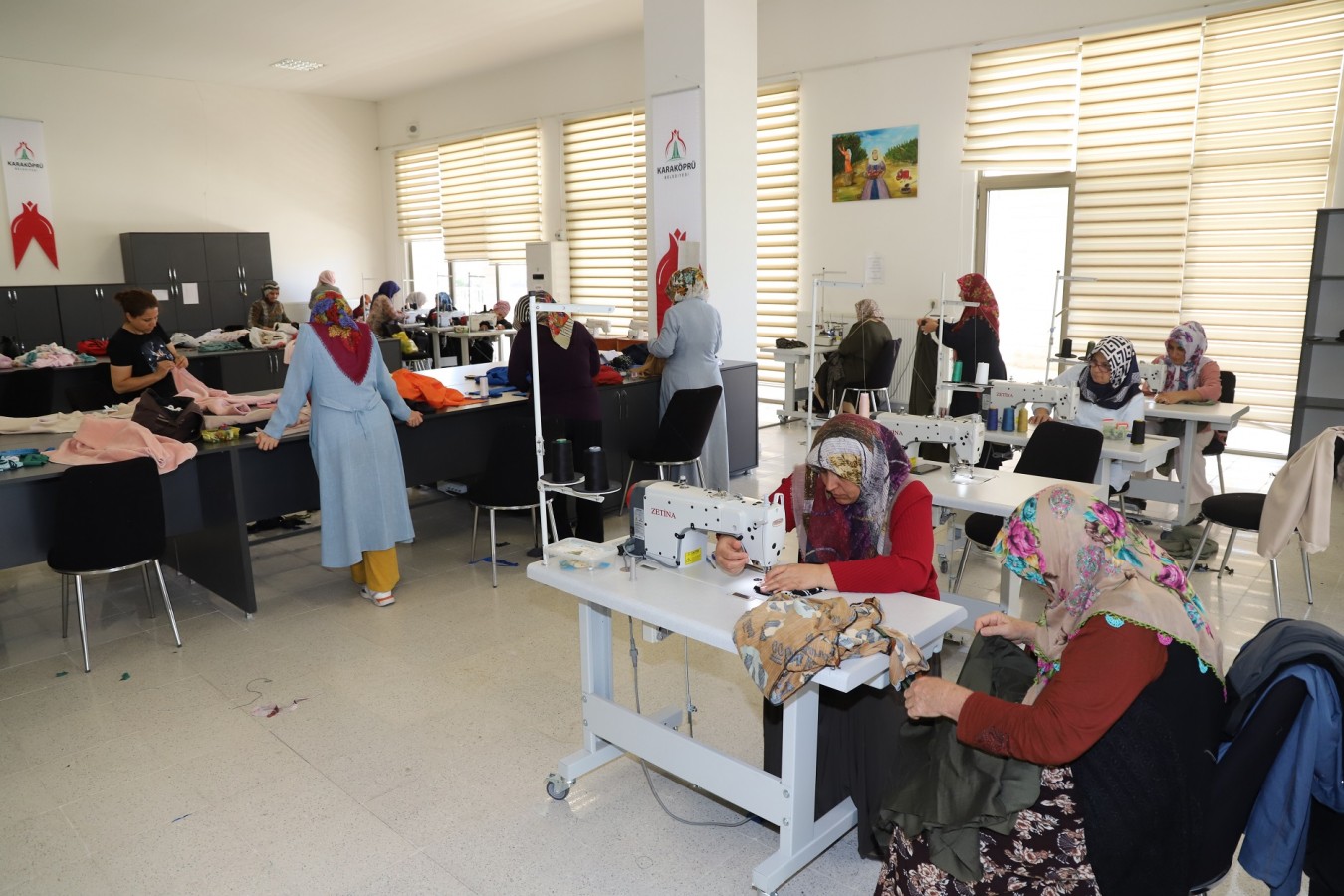 eğitimler alan kadınlar kurslarda öğrendikleriyle kendi kıyafetlerini