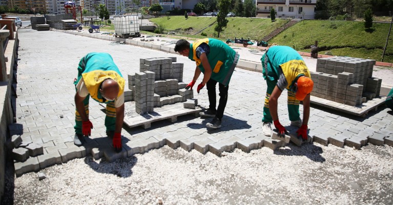 Karaköprü Belediyesi Fen İşleri ekipleri Karşıyaka Mahallesinde yeni açılan yolları kilitli parkeyle döşeyerek vatandaşların hizmetine sunuyor. Ekipler, altyapısı biten yollarda da kilitli parke döşeme çalışması gerçekleştirdi.