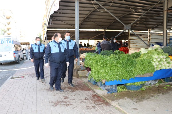 Karaköprü Belediyesi Zabıta ekipleri ayrıca pazar yerlerinde maske takılması konusunda araçlardan sık sık uyarı anonsları da yapıyor.