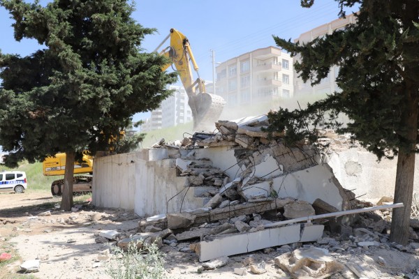 Yaklaşık 3 bin 500 metrekare alan üzerine yapılacak olan semt pazarı için alanda bulunan 2 adet kaçak yapının yıkımı gerçekleştirilirken, önümüzdeki günlerde de semt pazarının temeli atılacak.