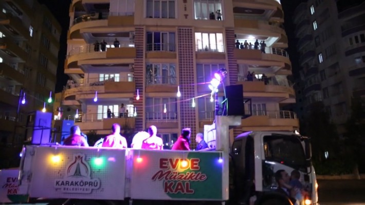 Şanlıurfa’da Karaköprü Belediyesi, koronavirüs tedbirleri kapsamında sokağa çıkma yasağında 3 gün boyunca iftardan sonra mobil araçla vatandaşlara ilahi ziyafeti yaşattı.