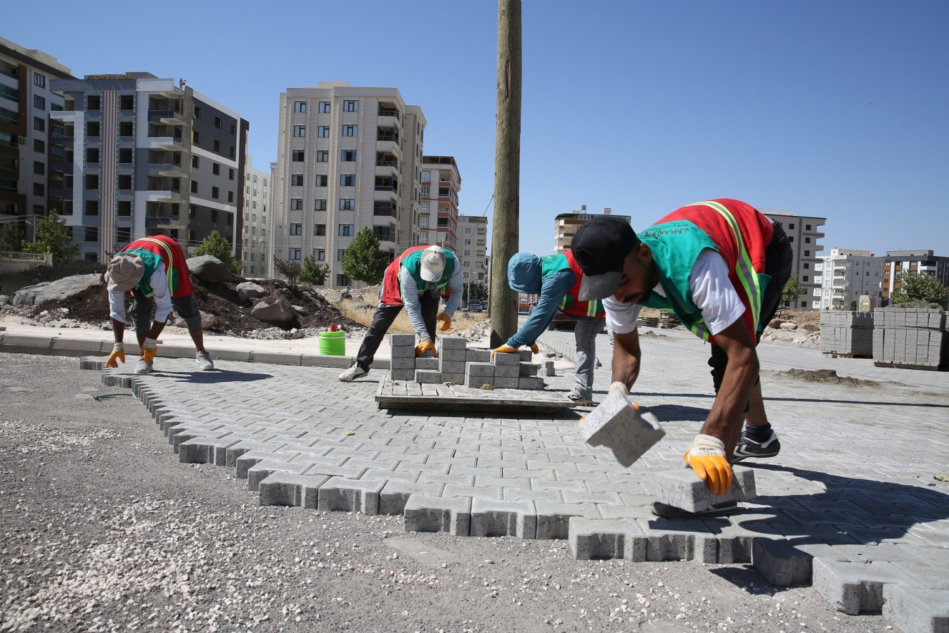 yeni yollar açıyor ve alt yapısı tamamlandıktan sonra bunları kilitli parke ile
