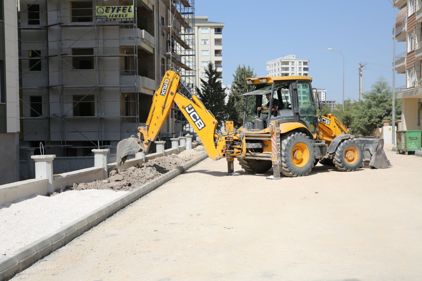 Karaköprü’de yeni açılan yollara kilitli parke taşı döşeniyor.
