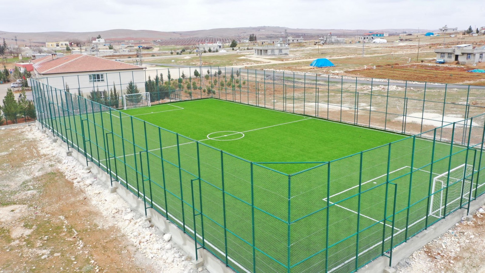 Karaköprü Belediyesi tarafından toplu taşımalı eğitimin olduğu tüm kırsal mahallelerde sentetik çim saha yapımı sürecek.