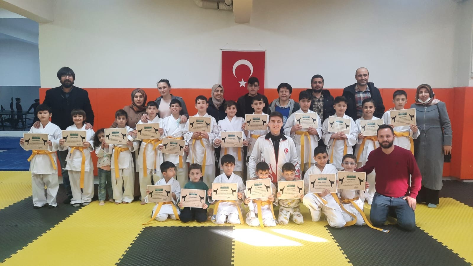 Kursa katılan öğrenciler aldıkları eğitimin ardından ilk kuşak ve katılım belgelerini alarak aileleriyle birlikte ilk sevinçlerini yaşadı.