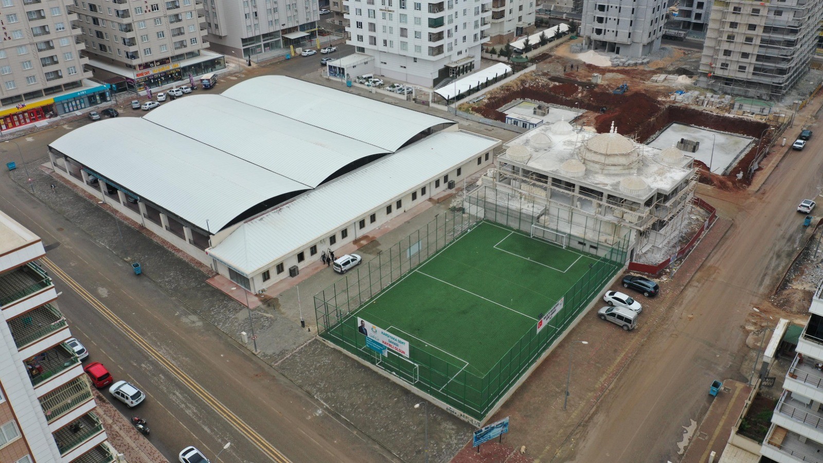 HALİLİYE- Haliliye ilçesinde Karşıyaka Mahallesinde kapalı semt pazarı, otopark, halı saha, zabıta müdürlüğü, muhtarlık ve caminin yer aldığı kompleks inşaatında sona gelindi.