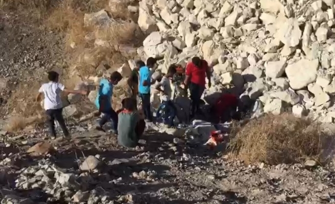 Çocuklar da ilgiliyle kurtarma çalışmalarını izlerken, kayalıkların arasından çıkarılan minik hayvan doğal yaşamına bırakıldı.