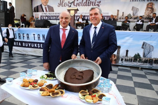 Türk Dünyası Kalaba Kent Meydanı’na kurulan stant ve sahnede Şanlıurfa mutfağı ve müzikleri tanıtılırken çiğ köfte, içli köfte, ağzı açık, ağzı yumuk ile semsek gibi tescilli lezzetler de misafirlere ikram edildi.