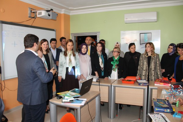 Komisyon üyeleri, STEM ve Bilim Merkezine yapılan ziyaretten sonra STEM Eğitimciler Derneği sunumu için Şehit Mustafa Direkli Ortaokuluna geçti.