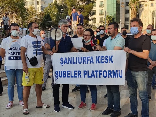 Kamu Emekçileri Sendikası Konfederasyonu (KESK) Şanlıurfa Platformu hükümet ile sendikalar arasında imzalanan 6. Dönem Toplu Sözleşmesi’yle ilgili basın açıklaması düzenledi. Ahmet Bahçivan İş Merkezi’nde düzenlenen açıklamaya Eğitim-Sen Şube Başkanı Mahmut Binici, SES Şube Eş Başkanı Salih Karataş ile Eğitim-Sen Şube Sekreteri Özlem Ulutaş Şengül’ün yanı sıra çok sayıda kamu emekçisi katıldı. Açıklamanın yapıldığı bölgede polis ekipleri yoğun güvenlik önlemi aldı.