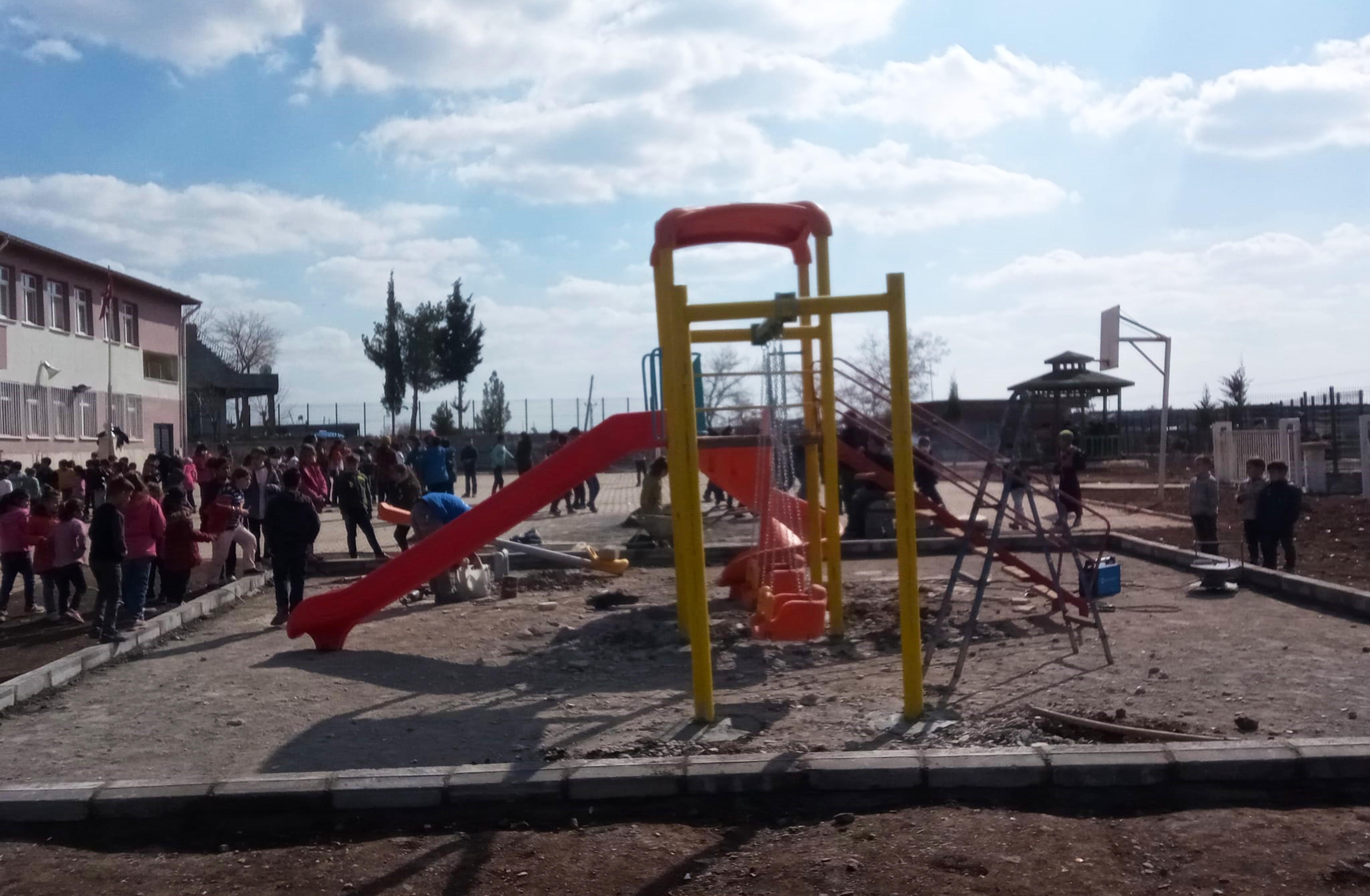 Siverek Belediyesi, merkezdeki hizmetlerin kırsala da götürülmesi amacıyla okullarda çocuk oyun alanları oluşturuyor.