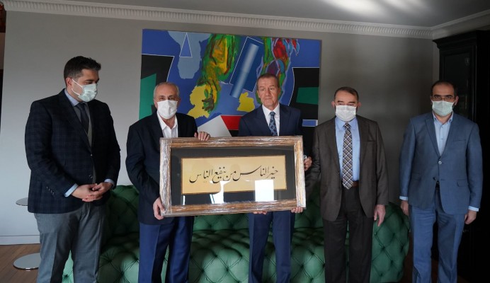 Ziyaretin sonunda cemiyet yetkilileri iş insanı Demirkol'a günün anısına hediye takdim etti.