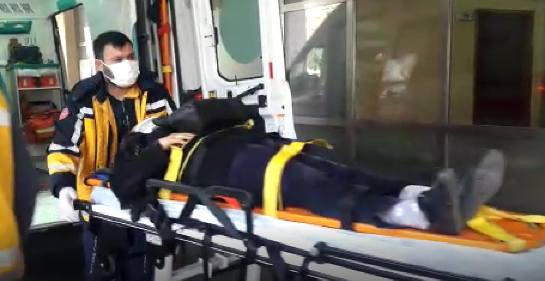 giden ekipler, yaralı adamın koluna yaptığı ilk müdahaleler sonucu ambulansla