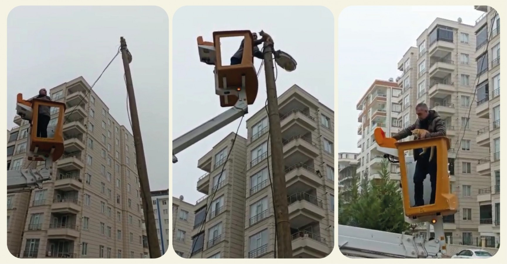 KARAKÖPRÜ - Şanlıurfa’nın Karaköprü ilçesinde bir mahallede köpeklerden kaçan kedi, direğe çıktı. Direğin en üst noktasına çıkan kedi, tırmandığı yerden inemedi. Yukarıda mahsur kalan kedi, mahalleli tarafından fark edildi. Vatandaşlar durumu Karaköprü Belediyesi’ne bildirdi.