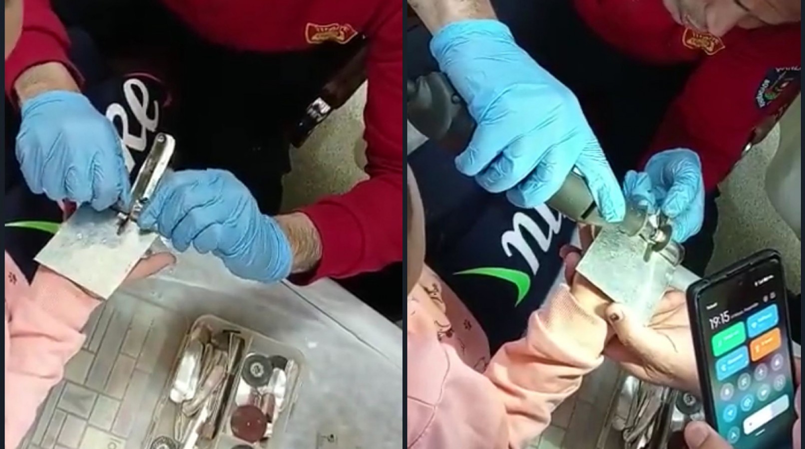 Hastaneye gelen itfaiye ekipleri parmağına sıkışan musluğu çıkarmak için titiz bir operasyon gerçekleştirdi. Uzun uğraşlar sonucu çocuğun parmağındaki musluk, itfaiye ekipleri tarafından spiral ile çıkartıldı.